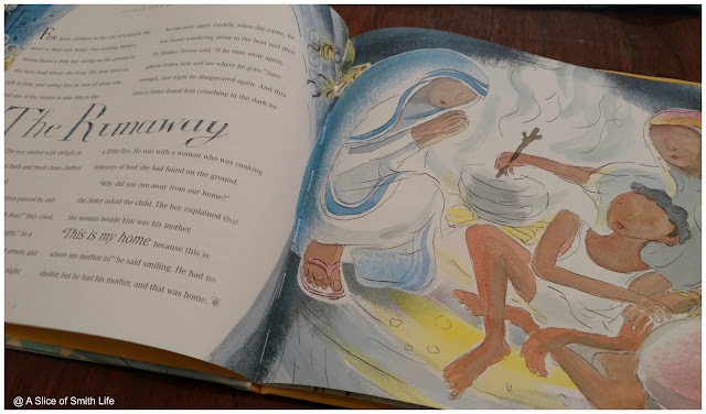 Read books about St. Teresa with your family. Two titles in my collection that our family enjoys are Stories Told By Mother Teresa and Mother Teresa: A Life in Pictures. On my wish list are two newer titles: Mother Teresa: The Smile of Calcutta and Mother Teresa of Calcutta.