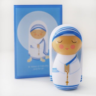 The St. Teresa of Calcutta Shining Light Doll is an adorable collectible vinyl figure and perfect for little hands and big hearts to play with! My 4-year-old daughter loves playing with our Shining Light Doll collection of various saint and Marian figures.